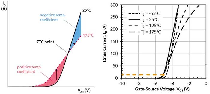 ZTC (Zero Temperature Coefficient): Punct la care curentul prin dispozitiv nu mai depinde de temperatură; peste acest punct, JFET-urile SiC au comportament stabil și evită fuga termică.