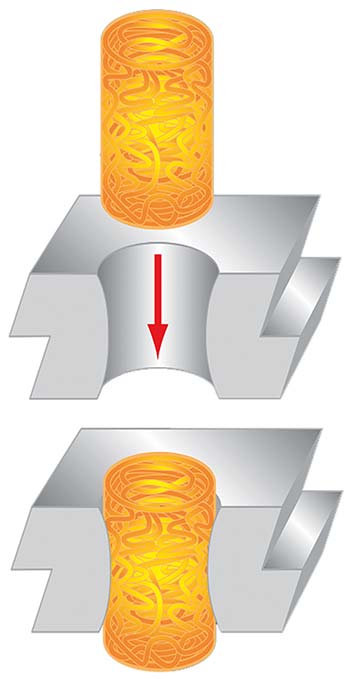 - a permite capete evazate care facilitează autoalinierea controlată în timpul compresiei