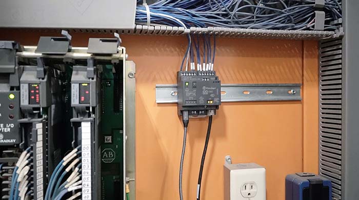 Arduino Opta montat într-o cutie de control a atelierului Atlas Machine.