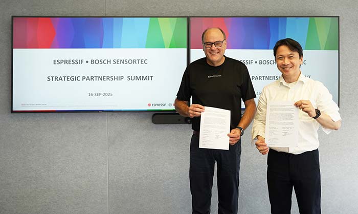 La 16 septembrie 2025, ceremonia oficială de semnare a avut loc la sediul central al Espressif din Shanghai, în prezența lui Stefan Finkbeiner, director general și CEO al Bosch Sensortec, a lui Wang Hongyu, președinte Asia-Pacific, și a lui Teo Swee Ann, fondator și CEO al Espressif, care au finalizat acordul de colaborare.