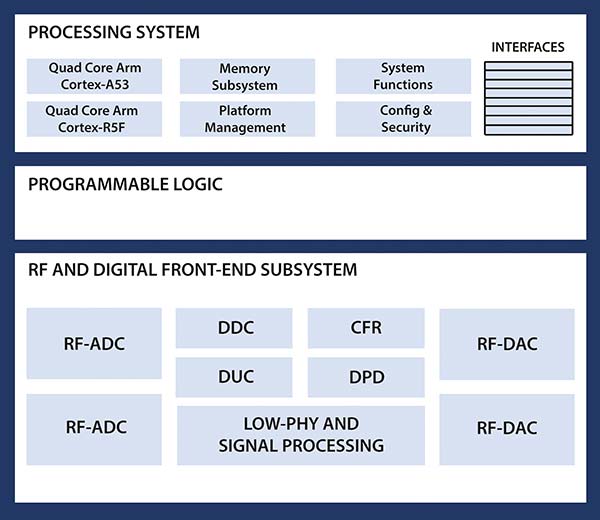 RFSoC (Radio Frequency System-on-Chip) – Circuit integrat care combină FPGA, procesoare Arm și convertoare RF ADC/DAC de mare viteză într-un singur cip.
