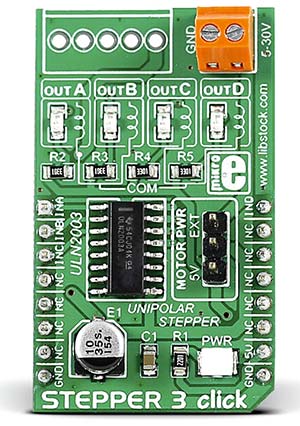 Dacă utilizați o placă cu microcontroler cu socluri MikroBUS, atunci modulul Stepper 3 Click (Număr stoc RS 136-0777) îndeplinește aceeași funcție.