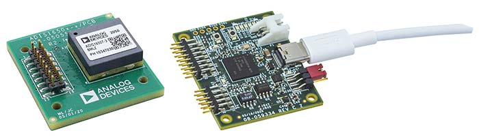 Figura 11: Placa breakout ADIS16500/PCBZ (stânga) și kitul de evaluare EVAL-ADIS-FX3Z (dreapta) permit dezvoltarea rapidă a aplicațiilor bazate pe IMU-ul ADIS16500. (Sursa imaginii: Analog Devices)
