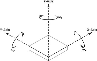 Un giroscop triaxial măsoară viteza unghiulară (ωx, ωy, ωz) în jurul fiecărei axe (Figura 2), permițând robotului să urmărească modificările de orientare.