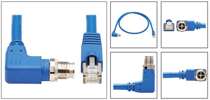 Figura 4: NM12-6A4-01M-BL de la Eaton – cablu industrial ecranat 10G Cat6a cu conector M12 în unghi drept și suport PoE de 60 W. (Sursa imaginii: Eaton)