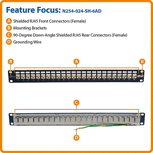 Figura 5: Panoul patch industrial Eaton (modelul N254-024-SH-D) evidențiind caracteristicile industriale cheie. (Sursa imaginii: Eaton)