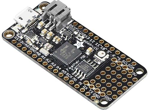 Este o placă Feather cu microcontroler bazată pe procesorul ATSAMD21G18 Arm® Cortex®-M0, care operează la 48 MHz și utilizează logică de 3,3 V, similar cu Arduino Zero (Figura 3). Cipul include 256 KB de memorie Flash (de opt ori mai mult decât Atmega328 sau 32u4) și 32 KB de RAM (de șaisprezece ori mai mult). Placa dispune de un port USB, oferind funcționalitate USB-to-Serial și posibilitatea de depanare.