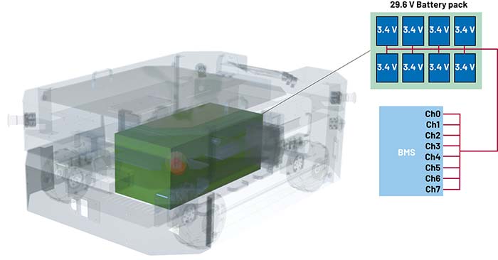 Soluțiile BMS asigură măsurători precise ale încărcării și descărcării bateriilor, maximizând astfel capacitatea utilizabilă. În plus, aceste măsurători permit un calcul exact al stării de încărcare (SoC – State of Charge) și al nivelului de descărcare (DoD – Depth of Discharge), parametri esențiali pentru fluxuri de lucru mai inteligente în cazul roboților mobili. La fel de importante sunt și funcțiile de siguranță ale acestor sisteme; alegerea soluțiilor potrivite este esențială, întrucât tehnologiile BMS oferă atât protecție la supraîncărcare, cât și detectarea supracurenților.