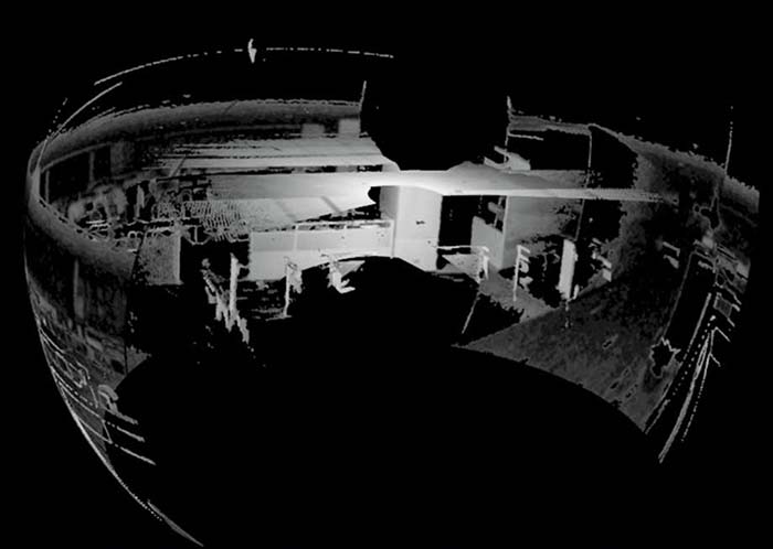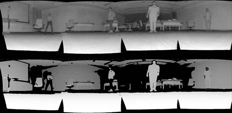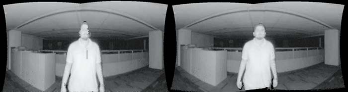 Rezultatul constă în două imagini 2D îmbinate (stitched): una obținută din imaginile IR și una din imaginile de adâncime, ambele proiectate pe planuri 2D.