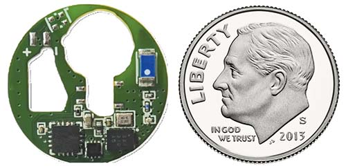 Figura 3: Sistemul este alimentat de o baterie standard de 1,5 V și poate fi integrat într-un plasture compact de aproximativ 18 mm, comparabil ca dimensiune cu o monedă de 10 cenți (SUA). (Sursă: Renesas)