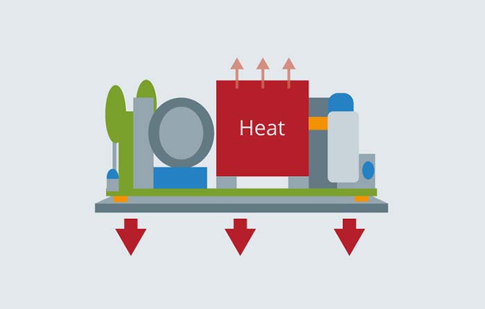 Sistemele de răcire bazate pe ventilatoare ridică însă preocupări privind fiabilitatea pe termen lung (MTBF al sistemului) și nivelul potențial ridicat de zgomot generat în timpul funcționării. Eliminarea ventilatoarelor din sistem devine astfel o opțiune atractivă, însă necesită identificarea unei soluții alternative pentru disiparea căldurii. În consecință, integrarea conceptelor de surse de alimentare cu răcire exclusiv prin conducție (radiatoare integrate) în metodologia de proiectare a fost introdusă pentru a îmbunătăți puterea nominală în condiții de convecție naturală. Cu toate acestea, persistă provocări legate de supraîncălzirea anumitor componente, precum cele magnetice.