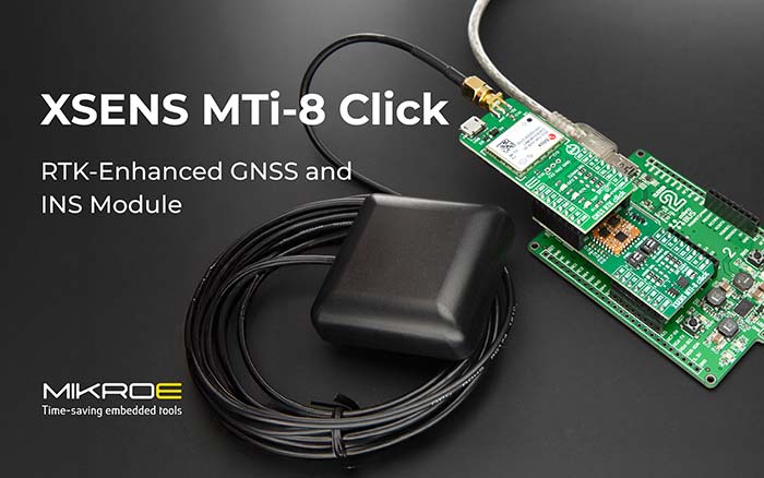 XSENS MTi-8 Click de la MIKROE reprezintă o soluție GNSS îmbunătățită cu RTK și un sistem de navigație inerțială (INS)